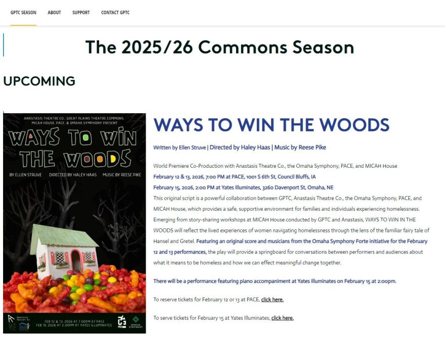 The play, “WAYS TO WIN THE WOODS,” runs February 12 & 13, 2026, 7:00 PM at PACE, in Council Bluffs, IA. and February 15, 2026, 2:00 PM at Yates Illuminates in Omaha, NE.